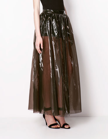 Minha gente, eu sei e reconheço que sou uma amante no que toca a arte textil, mas há coisas que ultrapassam um bocadinho o limite da normalidade. E também sei e mais uma vez também reconheço que tal como outros individuos, tento ser diferente de todos no que toca ao estilo pessoal, mas isso não significa que irei vestir um saco de plástico pela cabeça abaixo. Alguém que me explique por favor qual a funcionalidade desta saia. Parece algo saído das indumentárias dos concertos da Riahnna e mesmo assim, não me parece que o fosse devido ao comprimento. Para quem não sabe esta "bela" pecinha é da Bershka e eu juro que gostava de saber quantas vendas é que isto vai ter. É que sinceramente parece um saco de plástico. Para além de não ser confortavel de todo -suponho- , já nem menciono o barulho que deve fazer com os movimentos normais do dia-a-dia. Isto realmente. Existe moda e existe parvoice, e deixam-me dizer que neste caso a Bershka deixou muito a desejar.